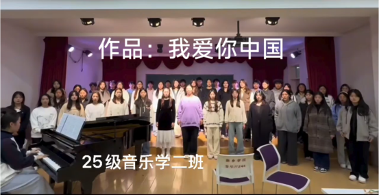 前期,学院联合专业教师制定活动规则,明确作品需围绕爱国、强军等国防主题,从专业表现、国防元素融合、创意感染力三个维度开展评选,并通过班级群、主题班会宣讲等多渠道动员学生参与。活动以线上提交作品、线下在学院会议室评选的形式推进,学生们踊跃投入创作:音乐学专业学生以《没有共产党就没有新中国》《我爱你中国》等红歌为纽带,在合唱编排中融入和声变化、节奏创新,在演唱技巧打磨中注重情感传递,让红色旋律成为国防力量的“声动载体”;舞蹈学专业学生围绕《美丽中国》《黄河大合唱》展开创作,以舞姿展现家国风貌,融入军事元素凸显强军主题,每一部作品都实现了艺术表达与国防内涵的深度契合。